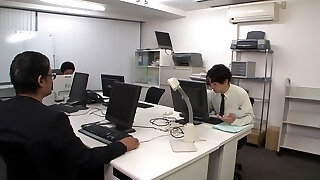 Japanese uncensored! Crank Japanese Nympho makes her coworker at the office into her sex object!
